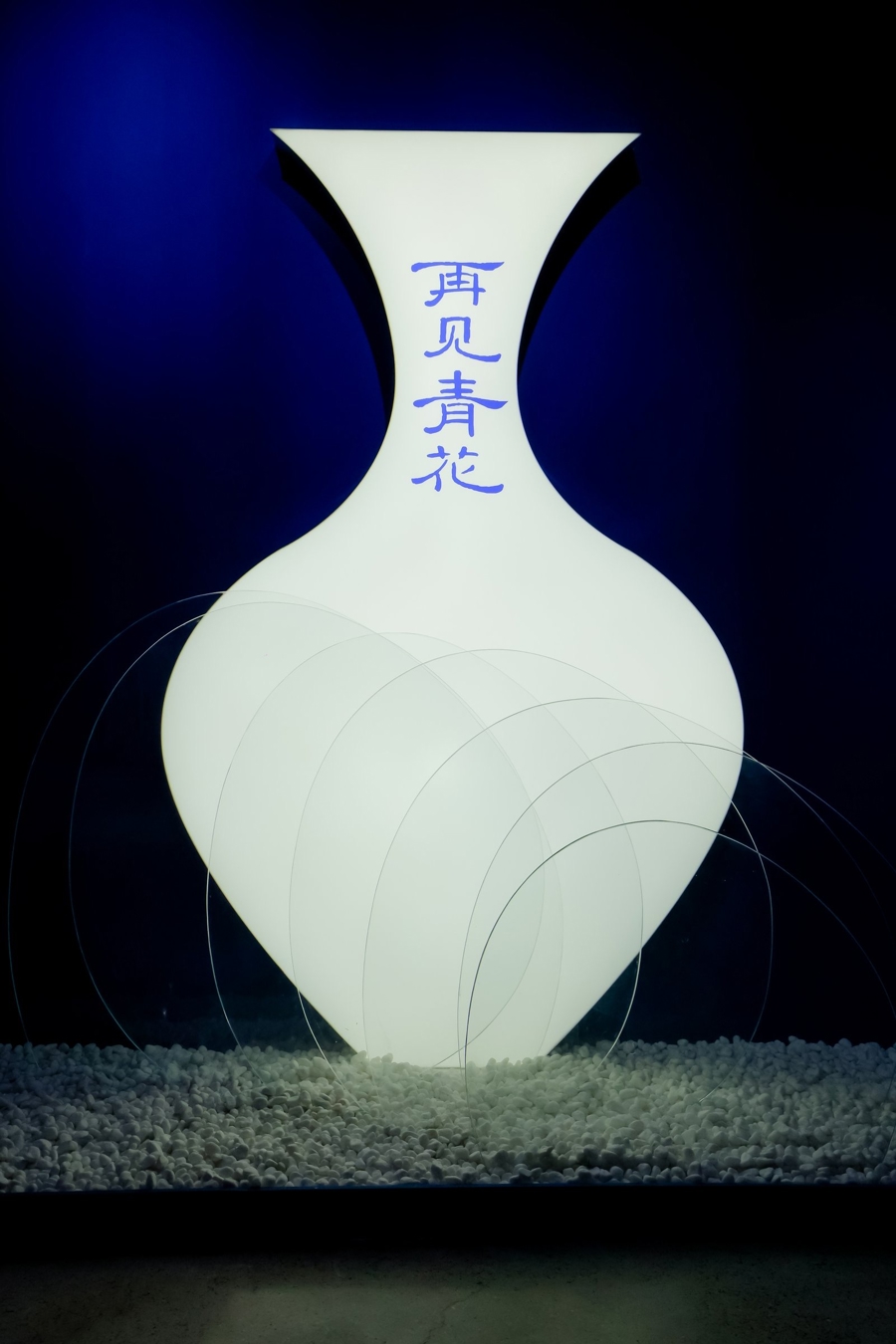 不止纹样,青花瓷的器型也在实用与艺术结合中蕴含着古人的生活哲学。记者看到,展览以经典“撇口瓶”为原型,通过灯光投射与玻璃片装置,直观展示其独特的造型语言。张玉威解读,撇口瓶微张的瓶口象征“海纳百川”,束颈、溜肩、鼓腹的形态则暗含“刚柔并济”的东方智慧。