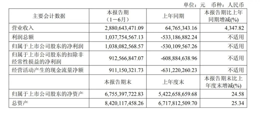 8月26日晚间,寒武纪披露半年报,2025年上半年营业收入28.81亿元乐发,同比暴增4347.82%;归属于上市公司股东的净利润10.38亿元,上年同期亏损5.3亿元,同比扭亏为盈;基本每股收益2.50元。